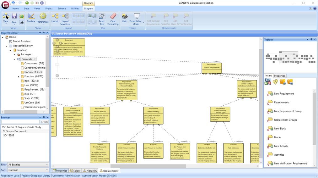 Whether it’s a core set of business requirements, a common set of process constraints, or applicable standards, many projects have sets of requirements that apply across multiple projects. Managing these libraries can become a drain on engineering and a project risk. Vitech tools enable you to effectively develop, apply, and evolve common libraries. Ranging from “clone and own” techniques suitable for seed information tailored for individual initiatives to rigorous cross-project requirement libraries under configuration control, GENESYS provides the library support your organization needs.