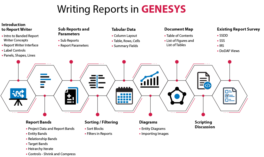 Introduction to MBSE with GENESYS is a prerequisite for this course. This course is intended for GENESYS users wanting to leverage the power of the Report Writer. Software Development experience is helpful for this course but is not necessary.